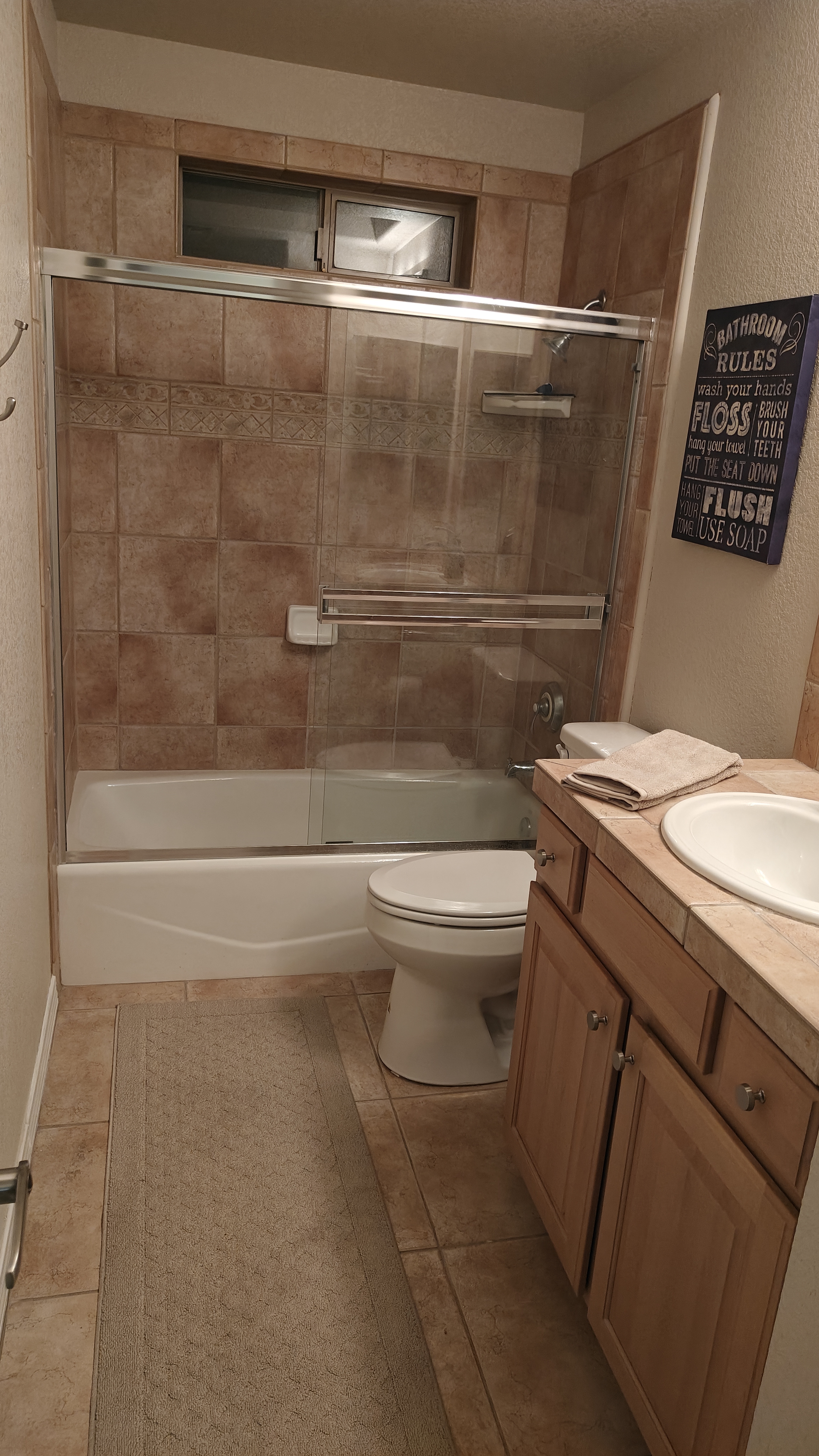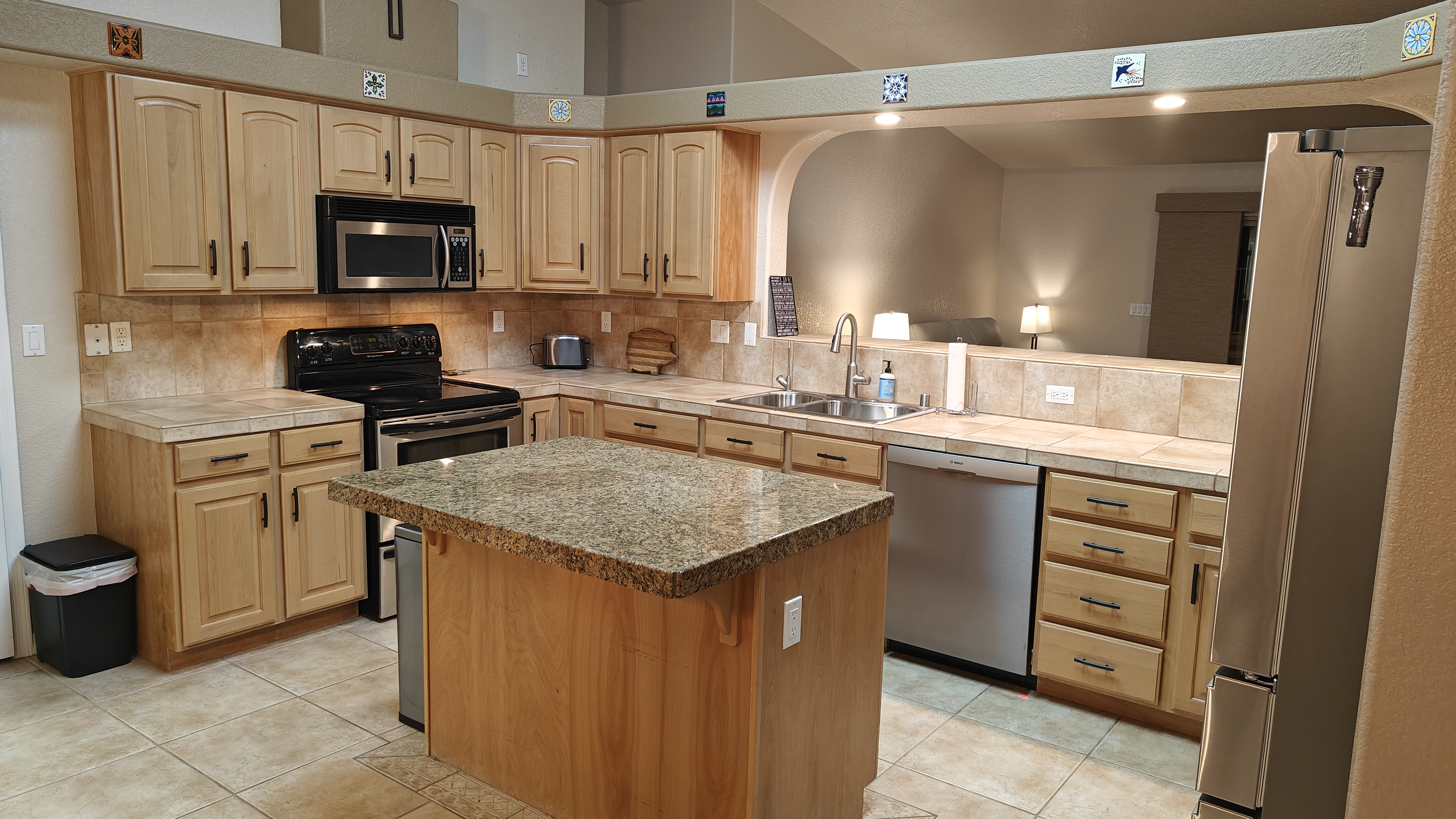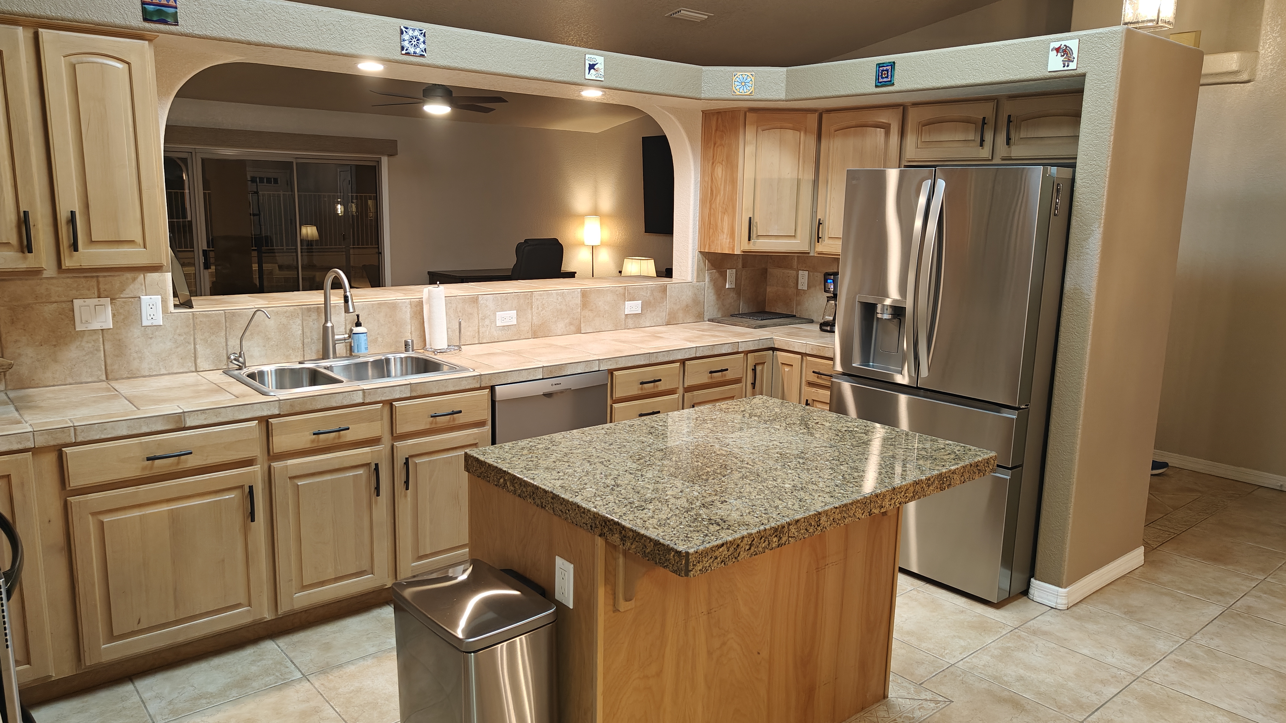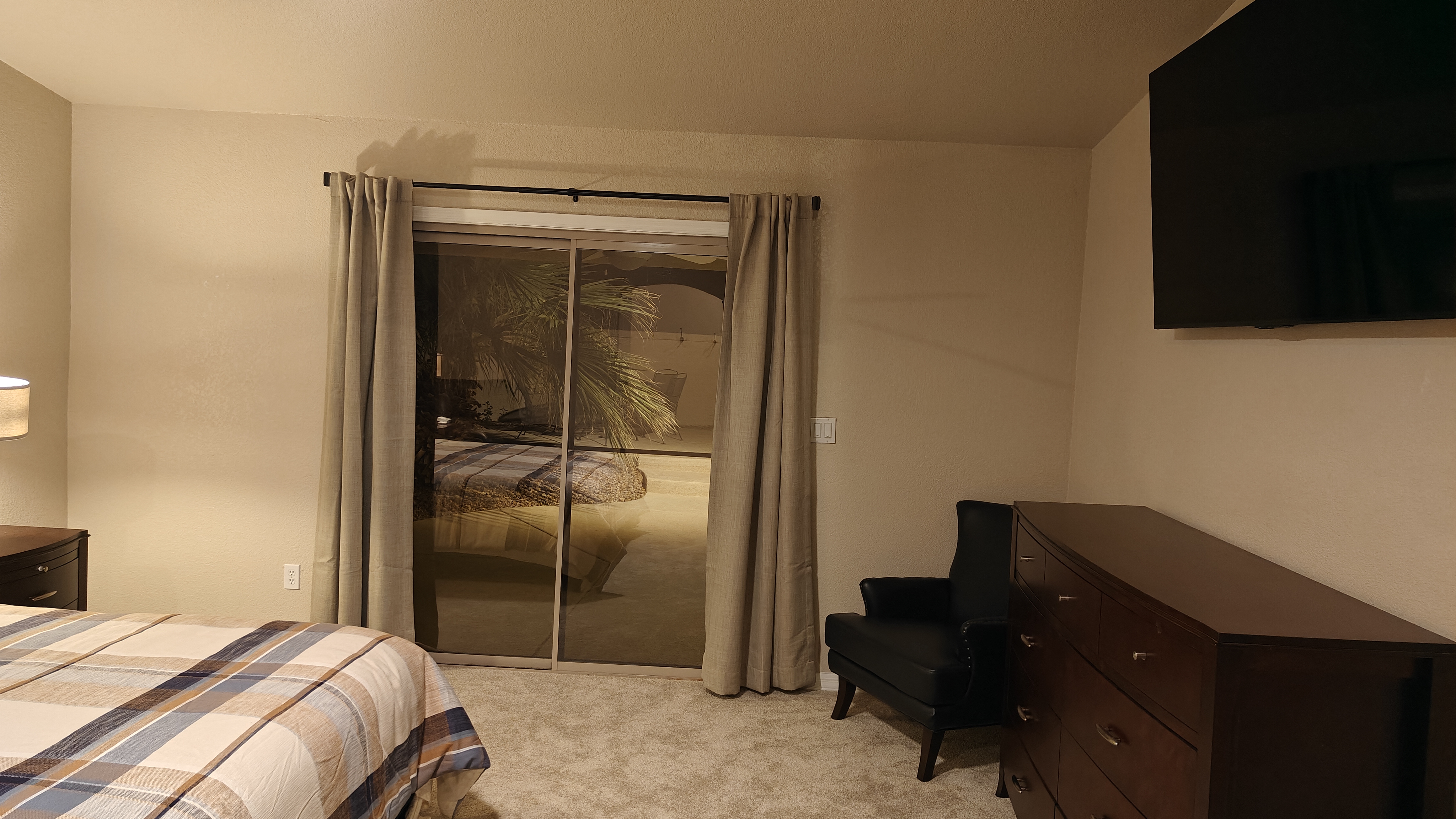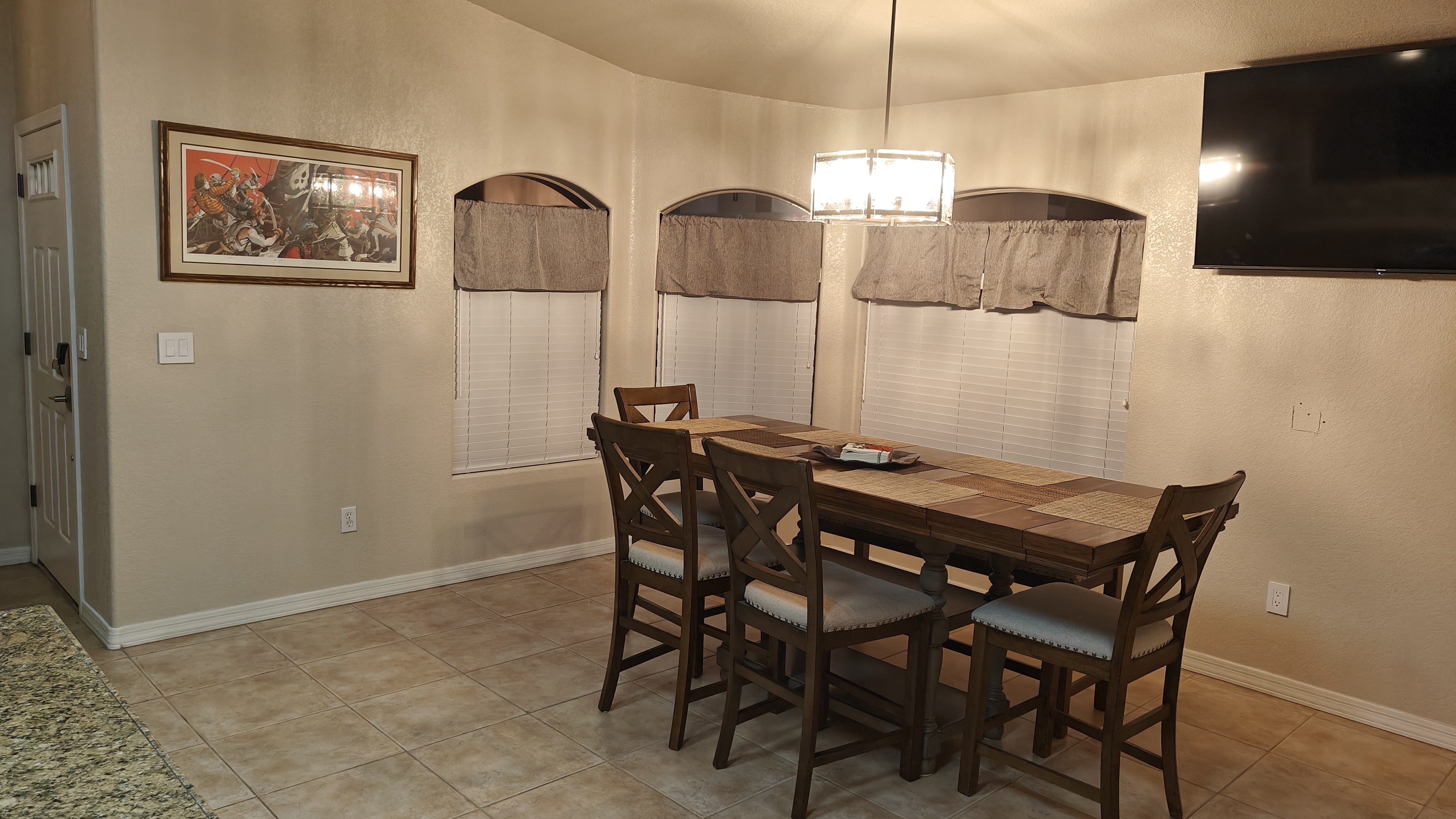 Our home has 3 bedroom and 2 bathrooms with a spacious private backyard with a large pool and 2 patio seating areas and chiminea for those cool nights. Solar heated pool that's only heated during the spring/summer.